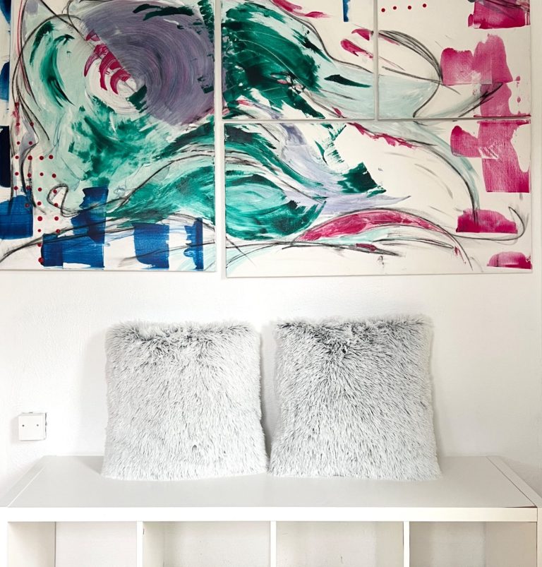 Abstrakte Acrylmalerei auf Leinwand der "Kleinstadtmalerin" Lea Herrmann