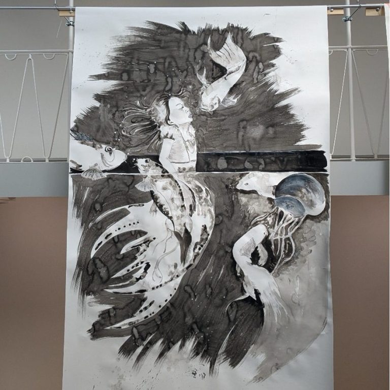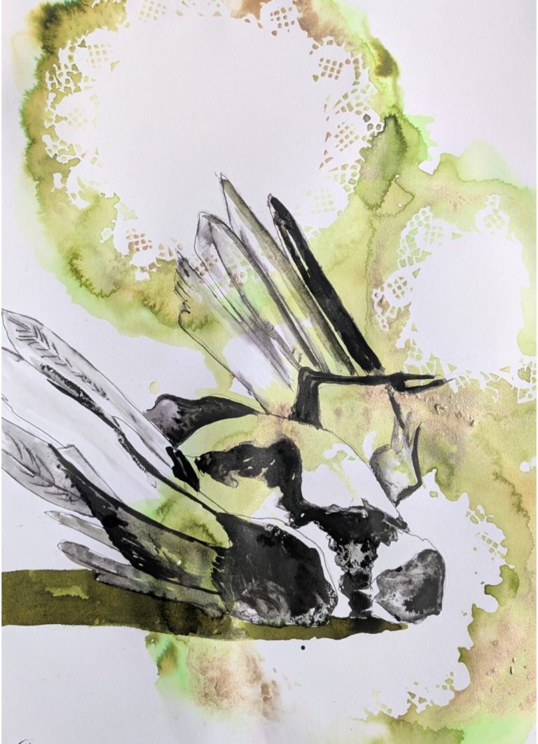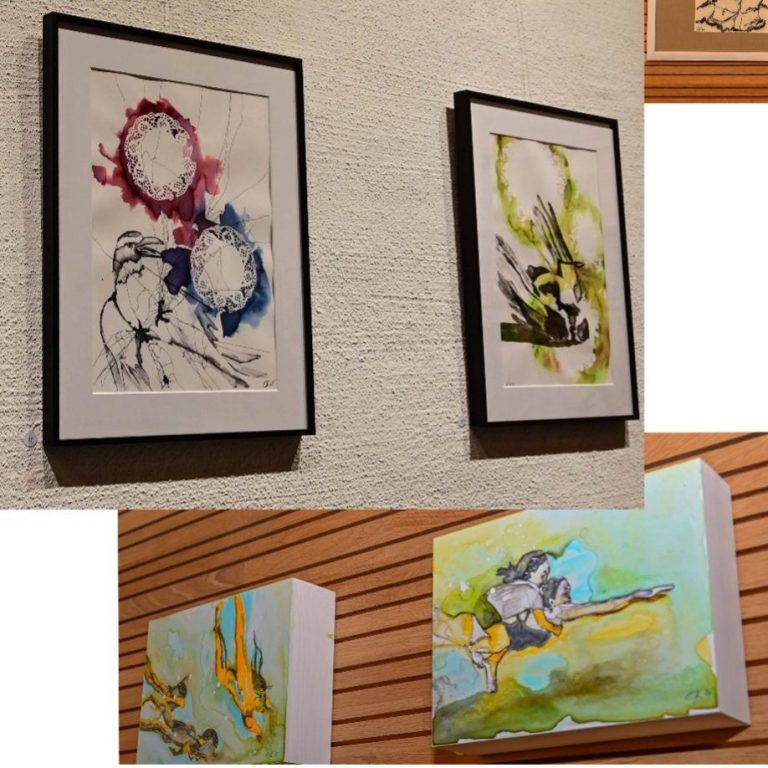 Nach familienbedingter Kunst-Auszeit liegt ihr Schwerpunkt inzwischen auf Zeichnungen. Ebenso entstehen aber auch Drucke und Gemälde. Teilweise reagiert sie installativ auf Ausstellungsräume und ergänzt ihre Ausstellungen durch Skulpturen.