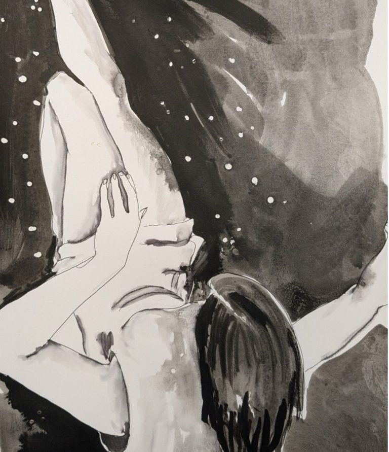 Ihre Werke entstehen vorwiegend mit Tusche und Fineliner, kombiniert mit lavierten Flächen. Zentrales Element ist dabei die Farbe Schwarz – ein „buntes Schwarz“, das durch Nuancen und Facetten enorme Tiefe und Emotionen erzeugt.