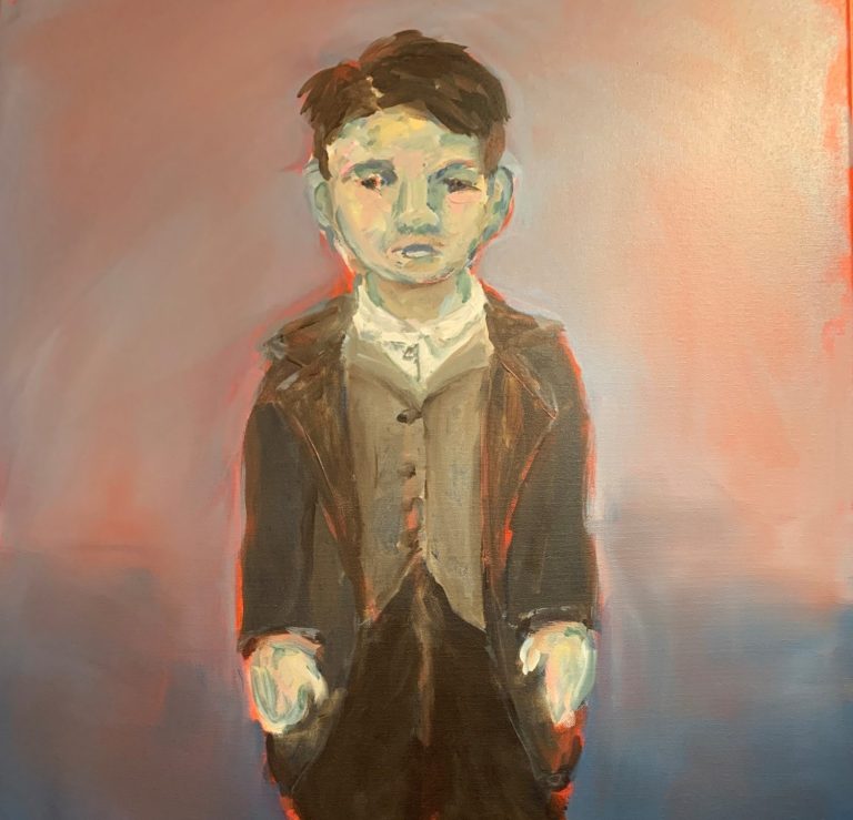 Doris Bockas Malerei bewegt sich im Spannungsfeld von Philosophie und emotionaler Intuition. Als Gelehrte des Denkens und zugleich als Malerin erschafft sie Figuren, die zugleich abwesend und vollkommen präsent sind. In ihrer Serie „Familienangelegenheiten“ treten anonyme Erinnerungen hervor. Ihre Gesichter wirken leer, aber niemals ausdruckslos. Die Geste erinnert an Goyas geisterhafte Erscheinungen oder Marlene Dumas’ verblassende Konturen, doch Bockas Ansatz ist sanfter, von stiller Anmut durchdrungen. Diese Kinder wirken eindringlich, aber nicht gequält. Sie rufen Erinnerungen, Verlust und ein fragiles Identitätsgefühl hervor, schwebend zwischen Unschuld und Auslöschung.